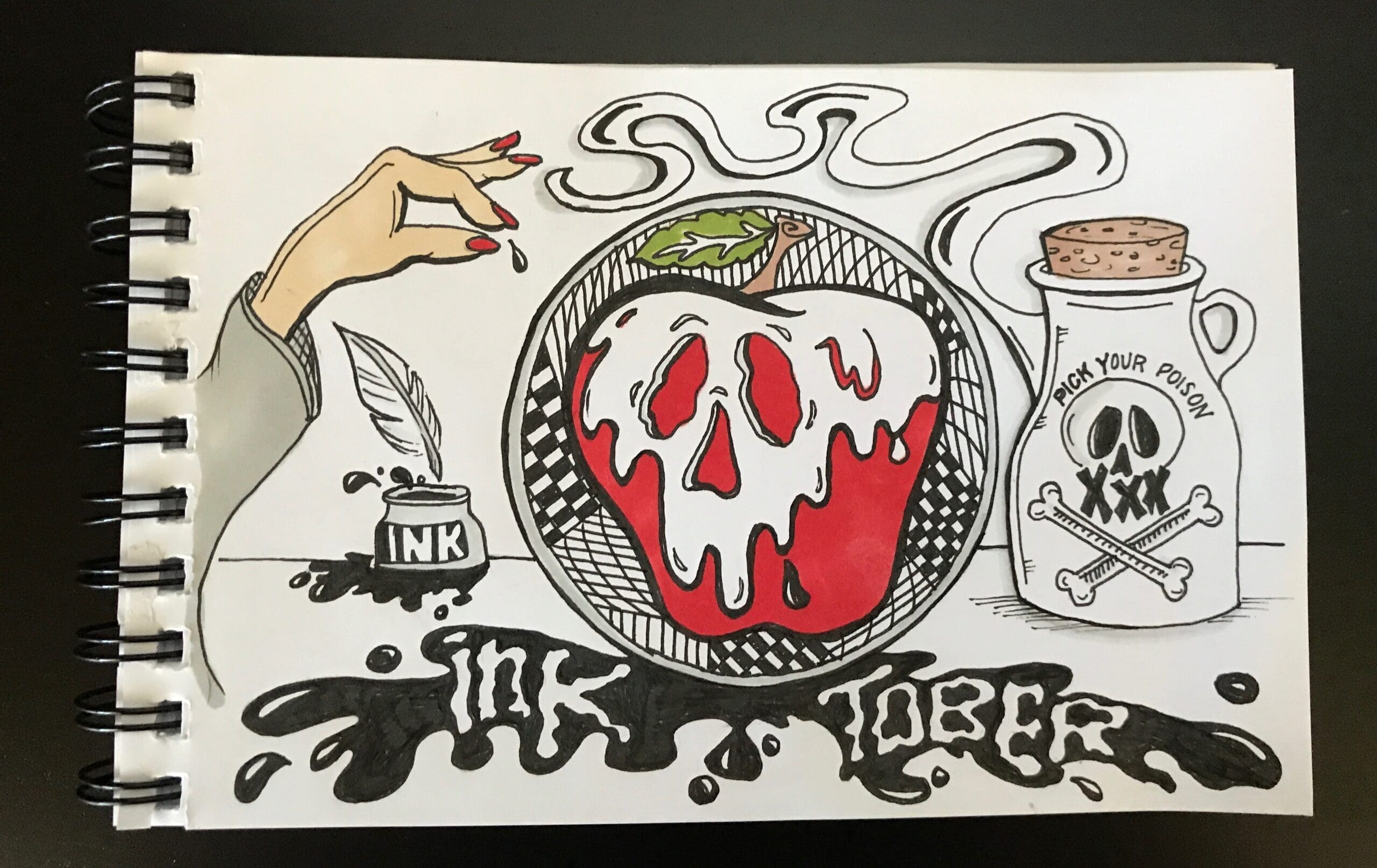 #Inktober was started by Jake Parker in 2009, where he challenged the visual world to up their visual game and create 31 drawings in 31 days during the month of October. I think it’s a great idea, one I wish I’d thought of! What better time to engage people around visual imagery than around a holiday where visual intrigue and stimulation is at its peak?